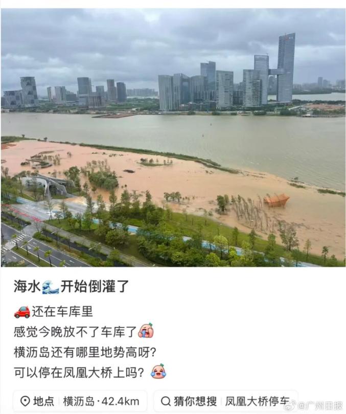 今天(24日)有市民反映南沙横沥岛江边地段被淹。