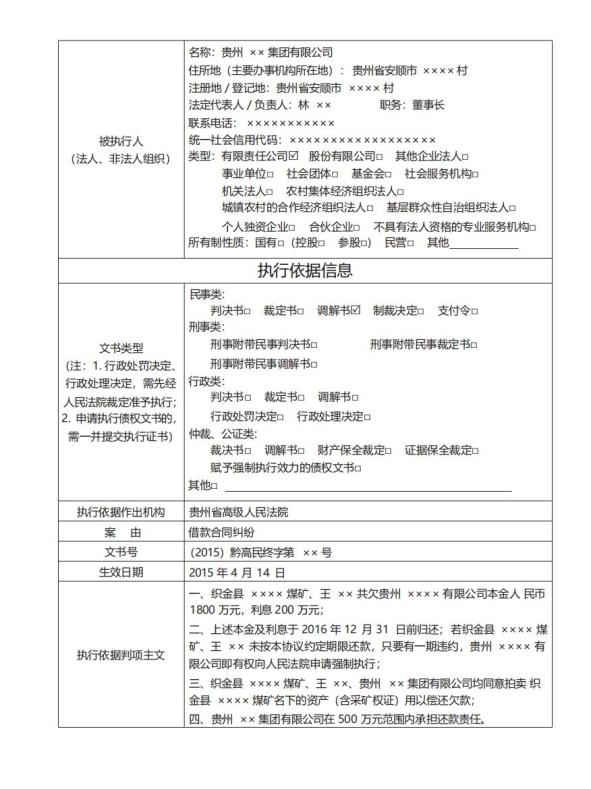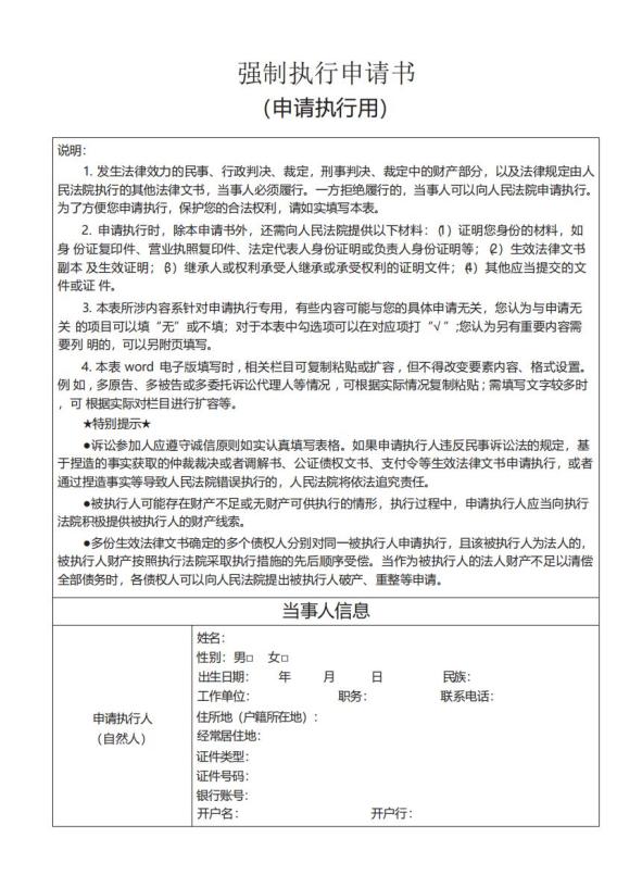 今天,就带您了解强制执行要素式申请书的填写方式及填写实例。