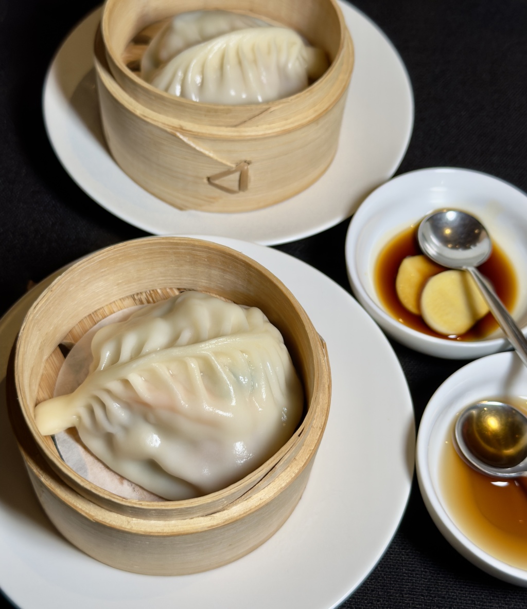 最后两道点心值得一说,一是虾蛄蚕蛹空气卷,上海人喜爱的春卷,到了山东厨师手里,整出了新花样,馅心里塞了爬虾子(BB虾)的净肉和蚕蛹,我眼睛一闭吃进肚里,外脆里酥,香气磅礴,恍惚还有蚕蛹爆浆的感觉。二是八鲜包,这可不是一般的包子,捏成秋叶状,馅心里塞足八样海鲜:黄鱼、墨鱼、海肠、海参、海胆、鲜贝、虾仁等,正应了“海纳百川”之名。而且包子皮用的是手工揉制的烫面,塑形稳定,厚薄可控。我边吃边说了在山东流传的人生“四大美事”:回龙觉,烫面饺,二房妻……最后一美想不起来了。