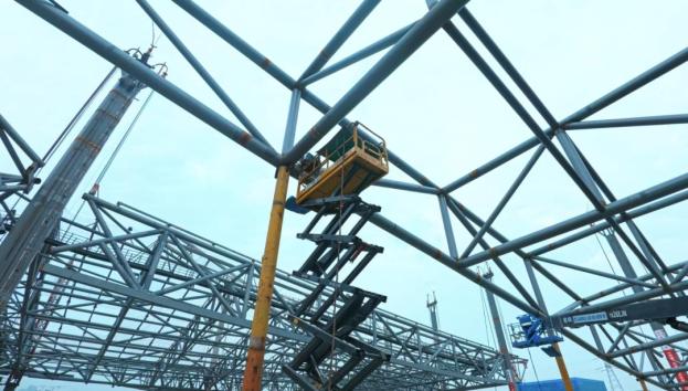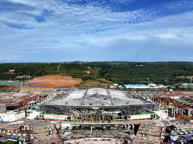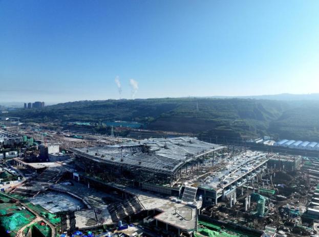 截至目前,西安东站已完成重量约8500吨、投影面积近8万平方米钢结构桁架提升,占屋盖钢结构总重的60%,钢结构施工预计今年10月将全面完成,届时,西安东站站房将全面进入金属屋面及装饰装修施工阶段。