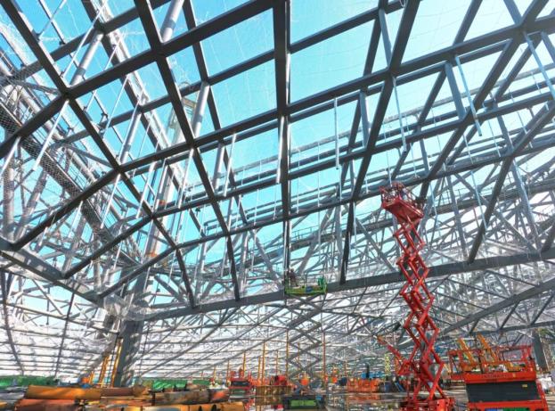 为了克服钢结构施工中屋盖桁架跨度大、高空焊接难度大等施工难点,中国铁路西安局集团有限公司西安站改扩建工程指挥部指导施工单位采用分区提升的方式,划分三个提升区域,提升前通过BIM技术对钢结构复杂节点进行三维建模,巧妙化解碰撞难题,将每一个构件精准定位,确保站房钢结构施工的顺利推进。