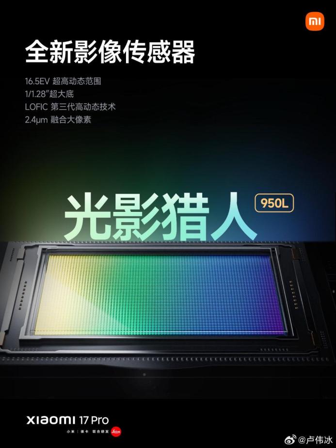 其他方面,小米17 Pro 对比小米17 标准版的升级,主要就是影像方面了。仔细看的话,小米17 Pro 的这颗主摄,命名是光影猎人950L( 标准版是光影猎人950 ),区别就在于 LOFIC 超高动态技术。