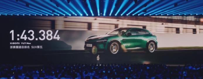 雷总首先当然是告诉大伙,YU7 在浙赛跑出了 1 分 43 秒 384 的好成绩,排在浙赛 SUV 圈速榜第五,同时也是一百万元以内的浙赛最速 SUV 。