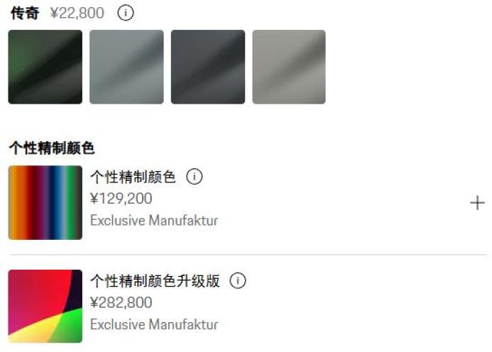 就这么说吧,保时捷的选配网站,我能摸鱼玩一整天。当然,价格也非常保时捷,一个定制车漆就能要你十几万块钱,比一辆车还贵。