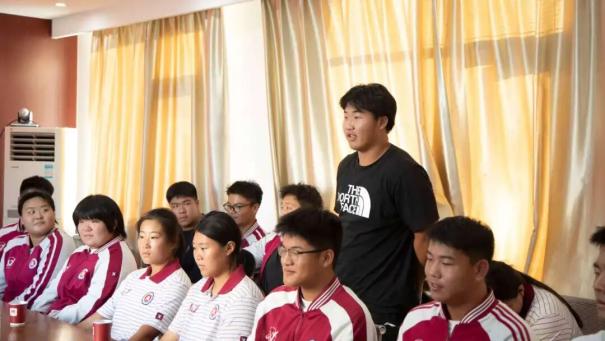 训练场的指导意犹未尽,主题座谈会随即在会议室展开。三位冠军结合自身经历,分享运动生涯的酸甜苦辣,他们的成长、成才、夺冠故事,让在场师生深刻体会到 “更快、更高、更强” 的体育精神,并非遥不可及的口号,而是日复一日的坚守与拼搏。互动环节,学生们不再拘束,纷纷抛出训练中的 “真问题”——“比赛前如何调整心态” “长期训练的肌肉疲劳怎么科学恢复”“如何突破训练的瓶颈”等等。面对这些困惑,冠军们结合专业经验细致解答 —— 隋新梅分享 “拉伸 + 营养补充” 的科学恢复方案,马永丰给出 “赛前针对性热身” 的建议,张竣传授 “心理暗示调节心态” 的技巧,每一个答案都兼具专业性与可操作性,为学子们破解瓶颈提供了新思路。