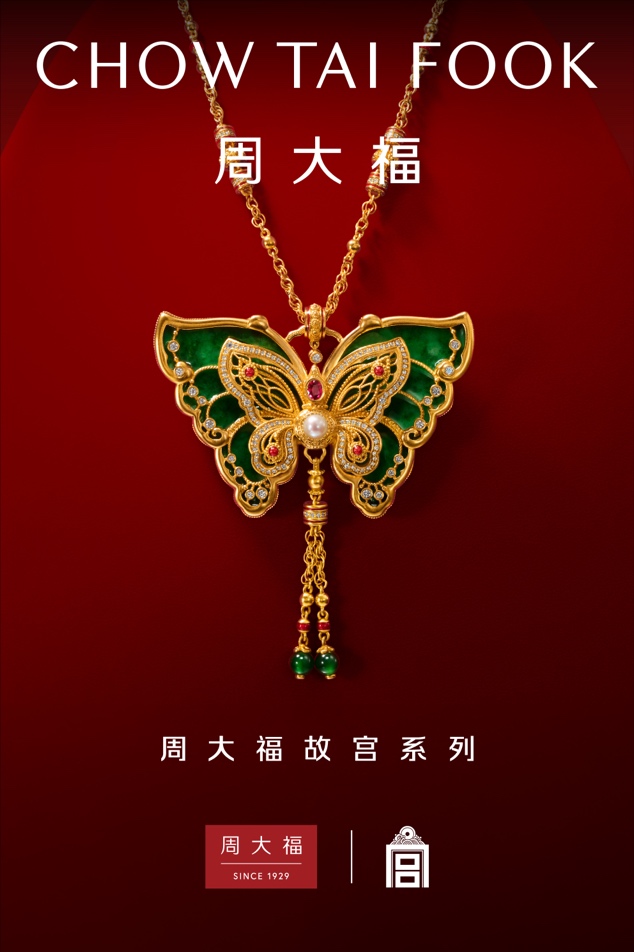 在谈到如何将中国文化融入当代高端珠宝设计时,Alan Chan举了一个例子。近期,周大福推出 “周大福故宫系列”蝴蝶元素珠宝新品。灵感来自故宫博物院中大量与蝴蝶相关的艺术呈现,品牌以蝴蝶这一文化符号作为核心元素,并选择翡翠与黄金的搭配来表达。