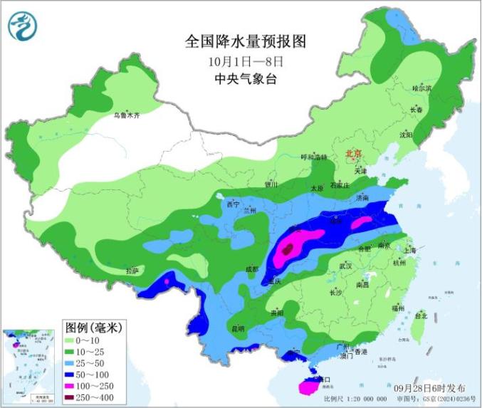 国庆中秋假日期间(10月1日至8日),华西至黄淮多降雨,青藏高原及新疆北部多雨雪;冷空气活动频繁、路径偏北,新疆、陕西、河南等地气温偏低,全国其余大部气温偏高;假日后期将有台风影响华南沿海。