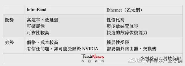 InfiniBand和Ethernet又可以分成两大阵营,前者较受NVIDIA 、微软等大厂的青睐,而后者则以博通、 Google 、 AWS为主。