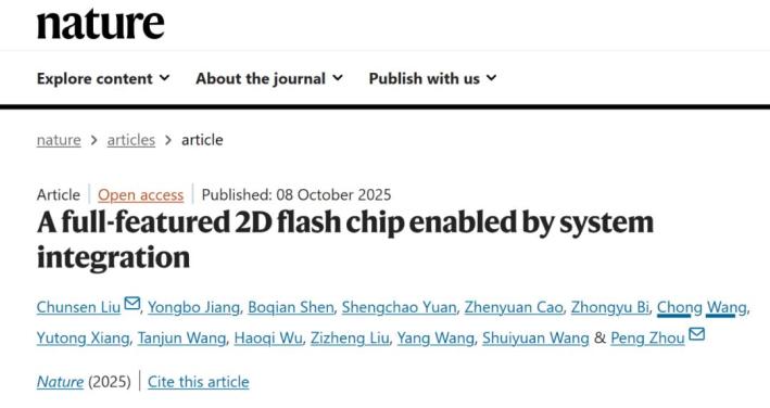 全球首颗!复旦团队研发二维-硅基混合架构闪存芯片