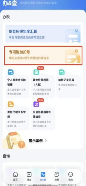1.登录个人所得税App,点击【办&查】,选择【专项附加扣除】。