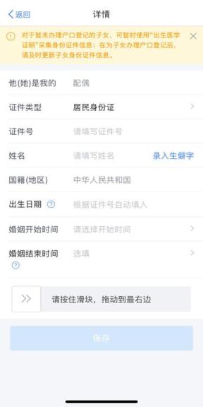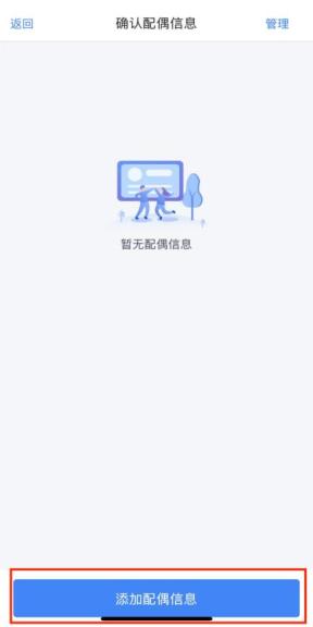 温馨提示:若点击选择配偶后无配偶信息,可点击下方【添加配偶信息】填写后保存即可选择。