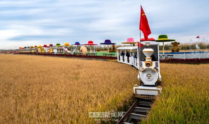 金秋的哈尔滨郊外,同样洋溢着丰收的喜悦与游玩的乐趣。闫家岗稻田艺术农场里,威风凛凛的“孙悟空机甲”矗立于金色稻浪中,成为最具人气的拍照点。“孩子一看到就兴奋得大叫,我们大人也觉得特别新鲜。”市民刘女士分享着家庭出游的喜悦。农场推出的“奇幻巡游”、稻田小火车和现磨米粉体验,让游客在玩乐中感受农耕文化。游客张先生品尝着现场蒸煮的农产品,赞不绝口:“既能欣赏稻田画,还能品尝到这么地道的农产品,真是不虚此行!