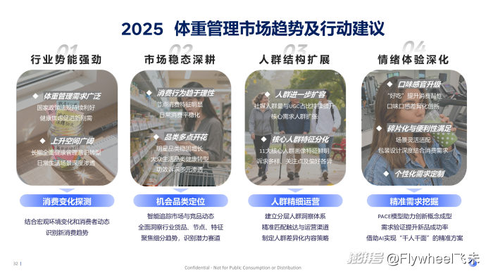基于此,Flywheel飞未发布了《体重管理食饮创新报告》,该报告聚焦消费者心智的细微变化与行业涌现的黑马品类,从中揭示潜力爆发的细分蓝海,展示如何通过创新模型抓住市场中隐藏的机会,并探讨精准融合数据、趋势与创意的爆款打造路径。