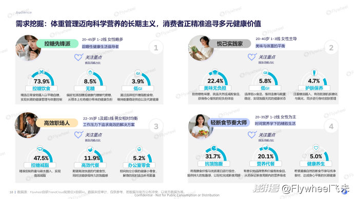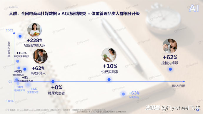 因此,Flywheel飞未根据全网电商及社媒数据,结合AI大模型聚类分析得出最新的人群细分数据,体重管理市场呈现出多元且高速增长的新格局。