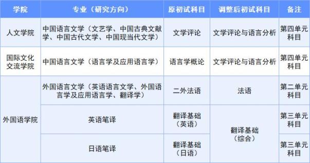 调整后部分专业初试科目情况详见下表。