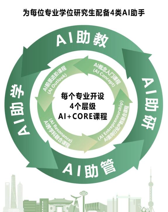 每个专业开设4个层级AI+CORE课程为每位专业学位研究生配备4类AI助手