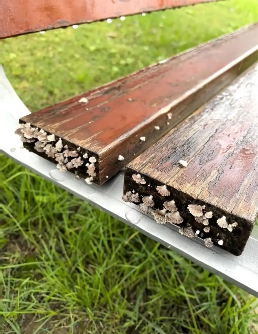 西安市民罗女士表示,她在世博园里的长椅上,看到也长出了各式各样的小蘑菇,很新奇,孩子还摘了一些。
