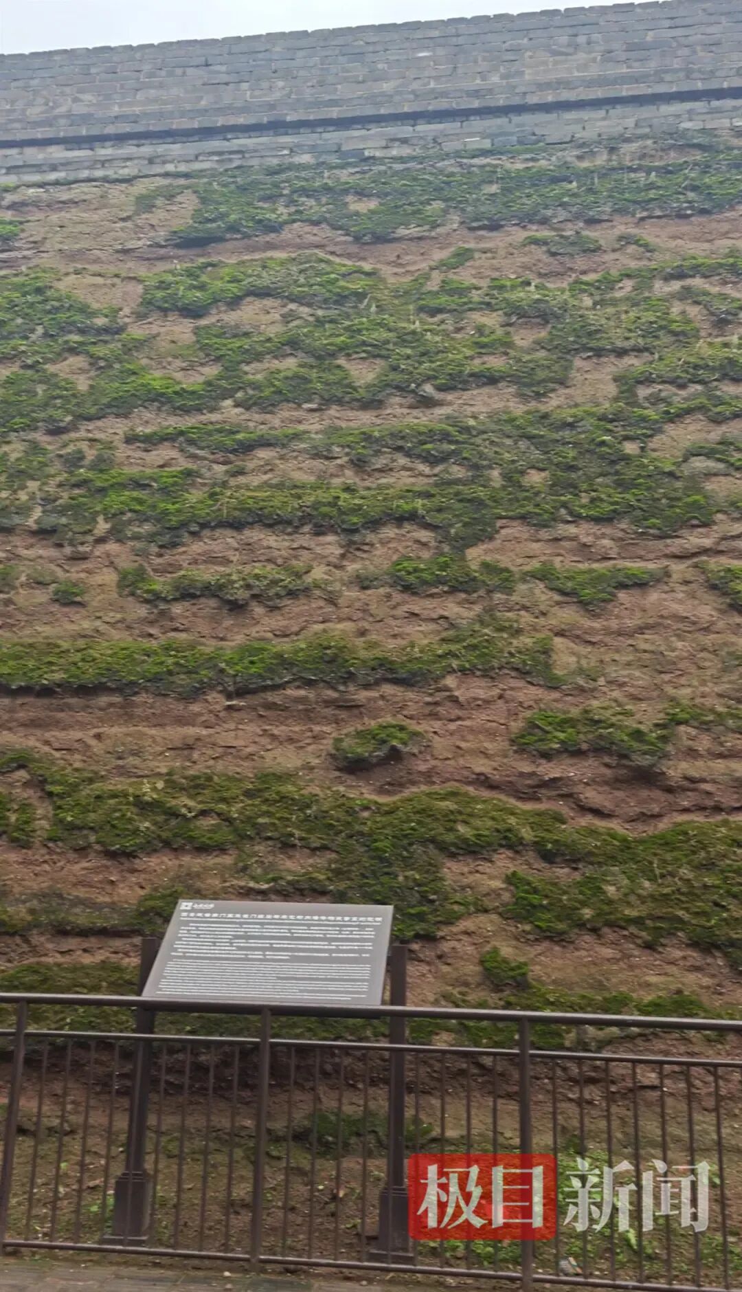 此外,西安城墙已因降雨长出了青苔,一些小花还从青苔上萌芽。记者在现场注意到,并非所有区域的城墙都有青苔,长青苔最多的城墙为土制,而现代修缮后的城墙则未长出青苔。