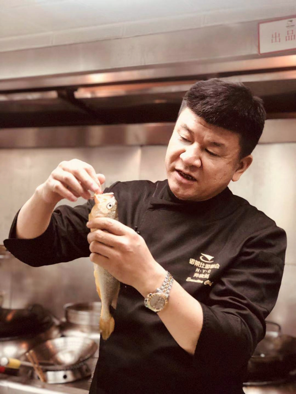 机会总是给有准备的人。1992年,帅晓剑应邀去湖州海味馆当厨师长,在那里他收获了两样东西。一是他发现湖州的餐饮业相当发达,饭店厨师与民间高手善于治鱼,日常能吃到的鱼肴就有上百种,还有一个脍炙人口的“百鱼宴”,小帅就如饥似渴地向湖州厨师学习做鱼肴。二是小帅发现湖州的餐饮业虽然发达,但厨师的烹饪理念相对保守,多取古法,调味品无非油盐酱醋几种。而他是学过粤菜的,对粤港一带流行的复合调味有很深的了解和熟悉应用,于是他在海味馆先行先试,推广复合调味,菜肴口味立马有了明显变化,客人吃了都说好,营业额直线上升。名声大振之后,不少饭店的厨师常常在午市、晚市聚集到海味馆厨房窗外围观小帅操作,看他究竟向炒锅里施了什么法术。
