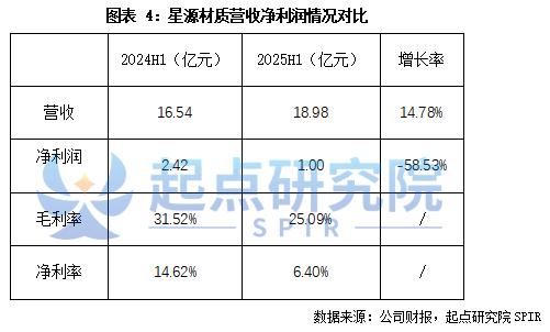 起点研究院SPIR调研数据显示,星源材质2025上半年实现营收18.98亿元,同比增长14.78%,净利润为1.00亿元,同比降低58.53%;毛利率和净利率同比均有所下降,其中毛利率同比下降了6.43个百分点,净利率同比下降了8.22个百分点。