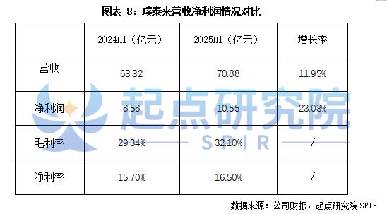 起点研究院SPIR调研数据显示,璞泰来2025上半年实现营收70.88亿元,同比增长11.95%,净利润为10.55亿元,同比增长23.03%;毛利率和净利率呈现正增长,毛利率同比上升了2.76个百分点,净利率同比上升了0.8个百分点。