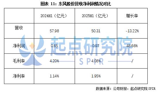 起点研究院SPIR调研数据显示,东风股份2025上半年实现营收50.31亿元,同比下降13.22%,净利润为0.97亿元,同比增长48.66%;毛利率同比下降0.12个百分点,净利率同比上升了0.81个百分点。