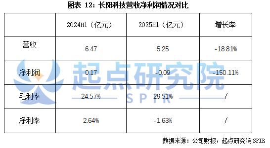 起点研究院SPIR调研数据显示,长阳科技2025上半年实现营收5.25亿元,同比降低18.81%,净利润为-0.09亿元,同比下降150.11%;毛利率同比上升了4.94个百分点,净利率同比下降了4.27个百分点。