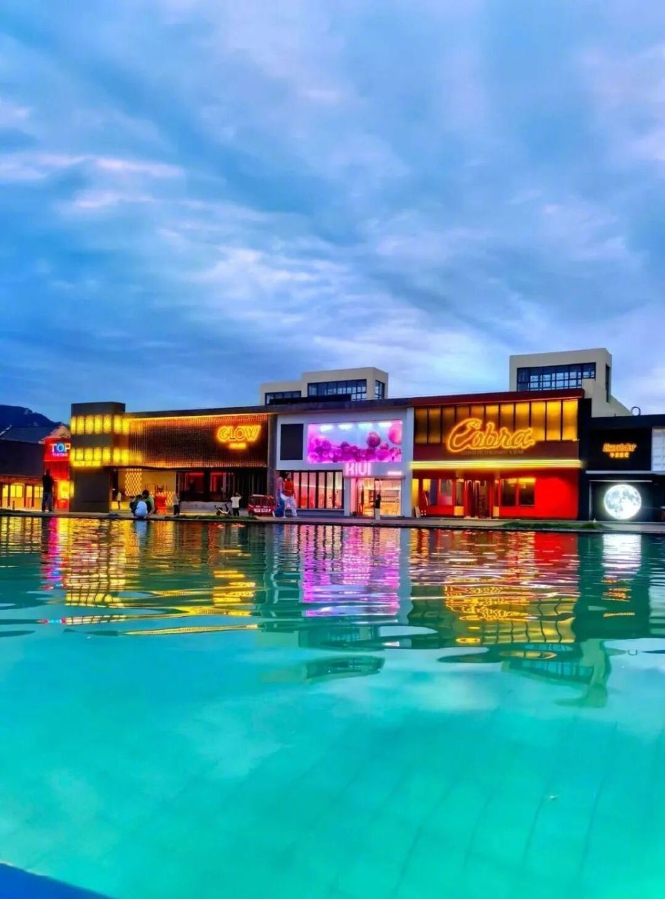 等到夜幕降临,沙滩酒吧街的灯光亮起,荧光、篝火、电音交织,三五好友举杯畅饮,北纬35°的夜就此升温。