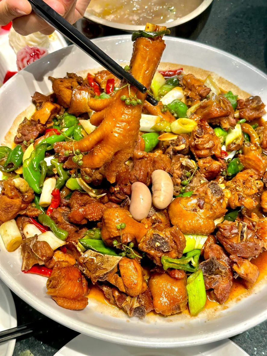 平邑火锅鸡的底气,来自当地人对鸡肉选择的讲究,选用本地散养鸡,肉质紧实弹嫩,带着自然的鲜香,炖煮后既不会发柴发硬,又能牢牢锁住汤汁的滋味,吃完只剩“没白等”的赞叹。
