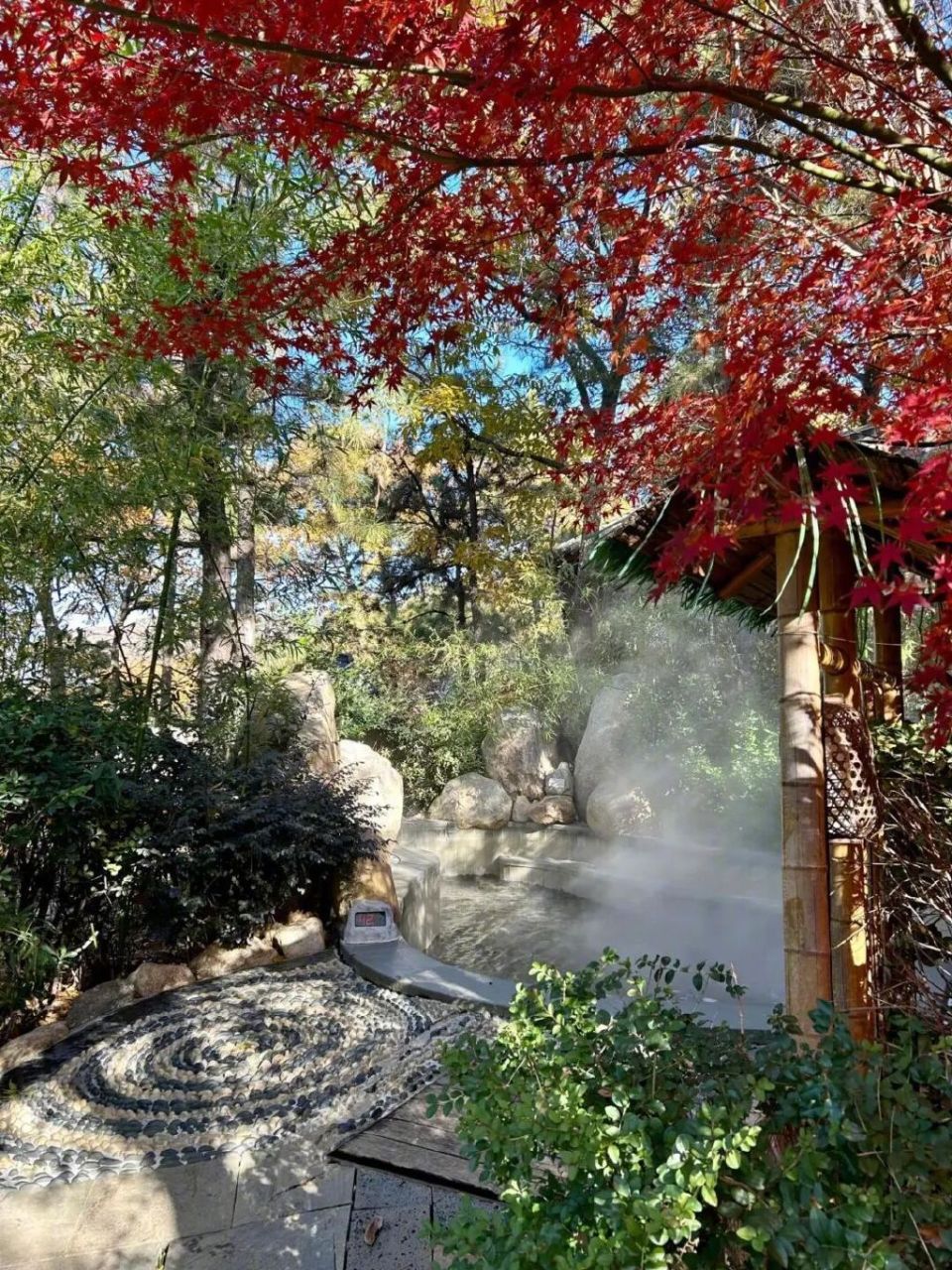 泡在温热的池水中,看松枝轻摇,听鸟鸣啾啾,山间的清风拂过脸颊,所有疲惫都烟消云散。