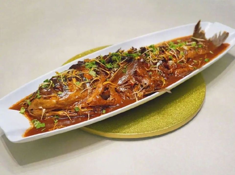 一道“金银花开富贵鱼”,以本地野生花鲢鱼为主,结合平邑金银花,药食同源,既体现出鱼的鲜美,又结合金银花的清香,还带有“金银花开,富贵有‘鱼’”的美好寓意。
