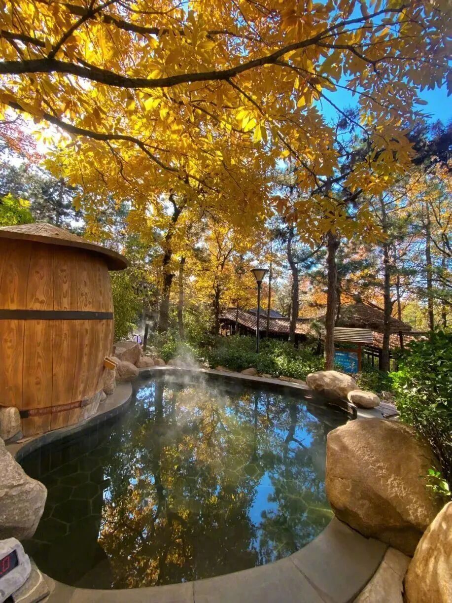 数十个温泉泡池散落在松林之中,玫瑰池浪漫芬芳,中药池底蕴深厚,鱼疗池趣味盎然。