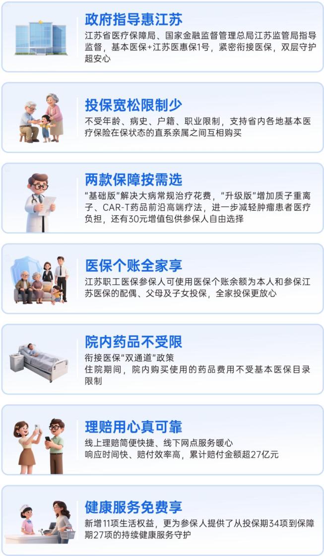 “江苏医惠保1号”用实实在在的行动,汇聚万千家庭的守望相助,共同织密一张“病有所医、医有所保”的坚实保障网。
