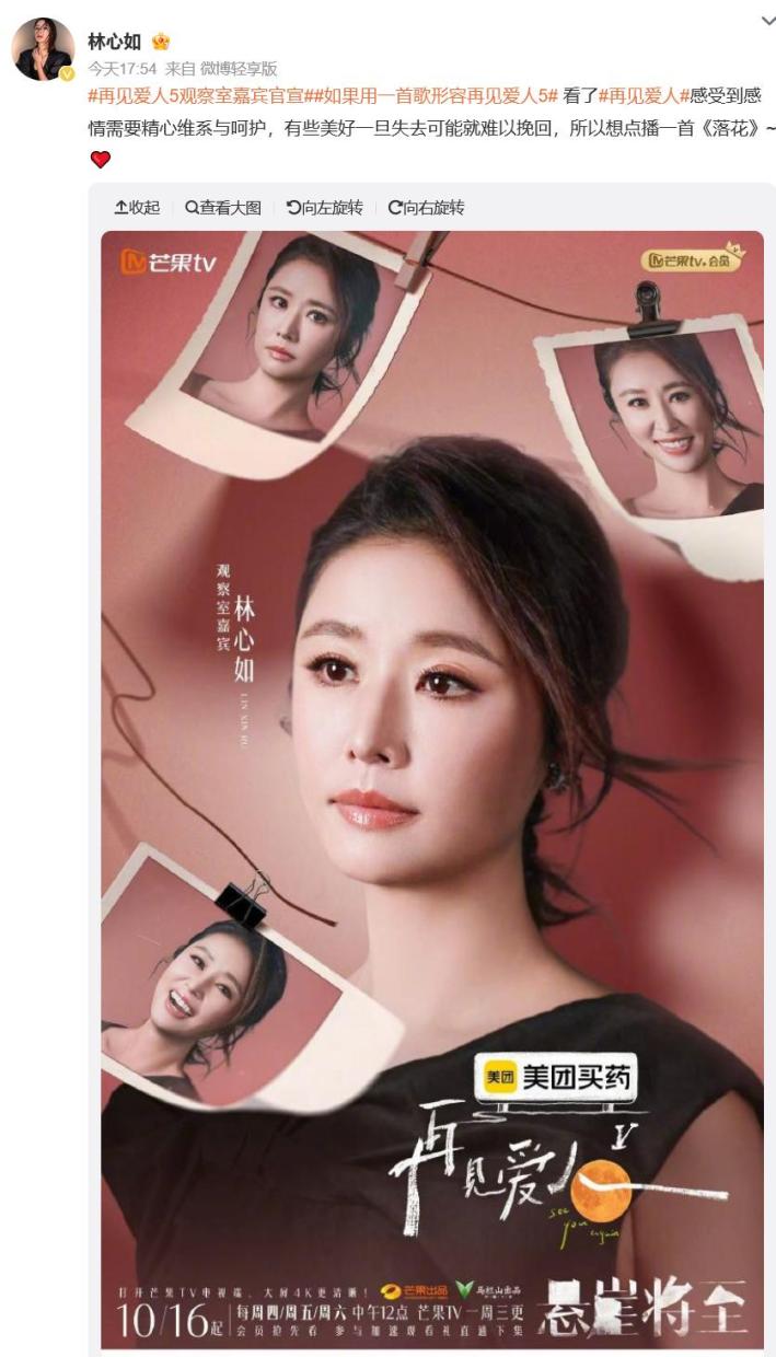 49岁林心如官宣参加《再见爱人5》:有些美好一旦失去可能就难以挽回