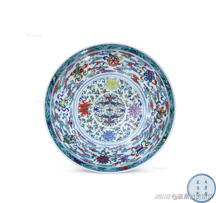 清雍正 斗彩八宝夔凤纹大盘