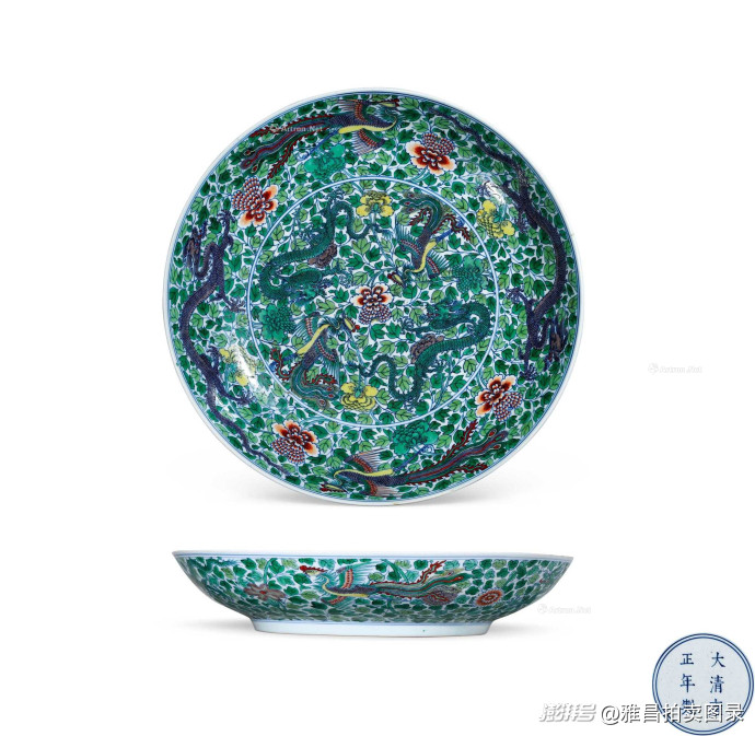 此专场高价拍品还有清雍正 斗彩龙凤穿花纹大盘以115万元成交;明宣德 剔红花卉纹盖盒以103.5万元成交;明万历 青花五彩缠枝莲纹天字罐以98.9万元成交。