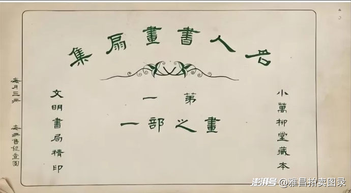 1915年,上海文明书局又以小万柳堂收藏的明清扇面为原本,使用珂罗版印刷技术出版《名人书画扇集》共60册,收录了600幅扇面作品。可以说,这两次著录出版,影响深远,极大地提升了小万柳堂在海内外收藏圈内的知名度。