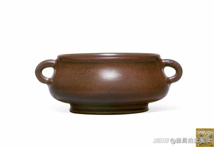 日本茶道家族释出的清雍正 仿钧釉蚰耳炉以456万港元成交。于雍正帝而言,香炉无疑是日常生活的佳友良伴。雍正帝曾在暮春时节写下「炉烟袅袅拂帘栊」,或在深夜写下「书卷香炉得自怡。」一缕炉烟,是平日生活中的闲适悠然,亦能伴其修佛参禅。此炉即为雍正御窑所制。造型取蚰耳炉式,唇口微侈,颈部略收,肩部对称设双耳,扁圆腹,胫部内敛,足部微撇,造型线条圆润,娇小可人,纤巧盈秀。炉壁内外满施仿钧釉,红紫漫散,近足处隐现米色,拙朴苍润,含蓄雍雅;外底施芝麻酱釉,底心釉下暗刻「雍正年制」四字双行篆书款。