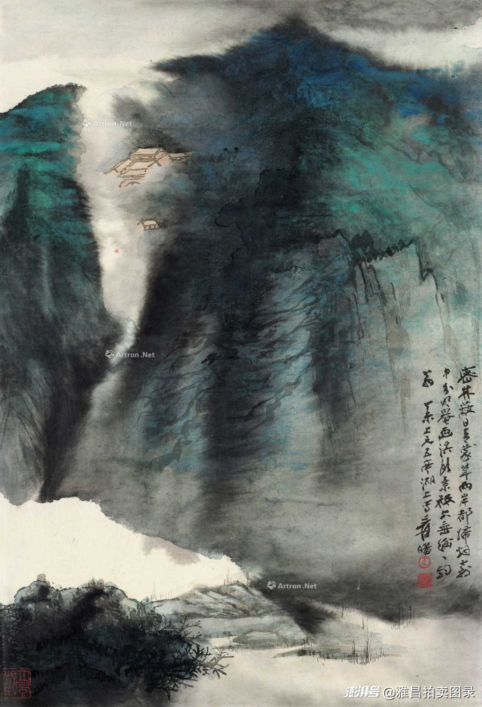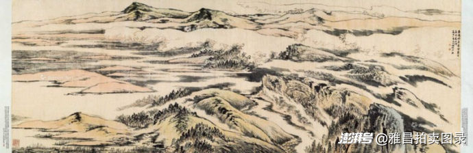 陆俨少《万里山河》805万元领衔:此作是1978年陆俨少为上海虹桥机场创作的巨幅装饰画,采用传统小青绿画法,反映了其晚年艺术风格的新突破,是其平生第一幅巨作。