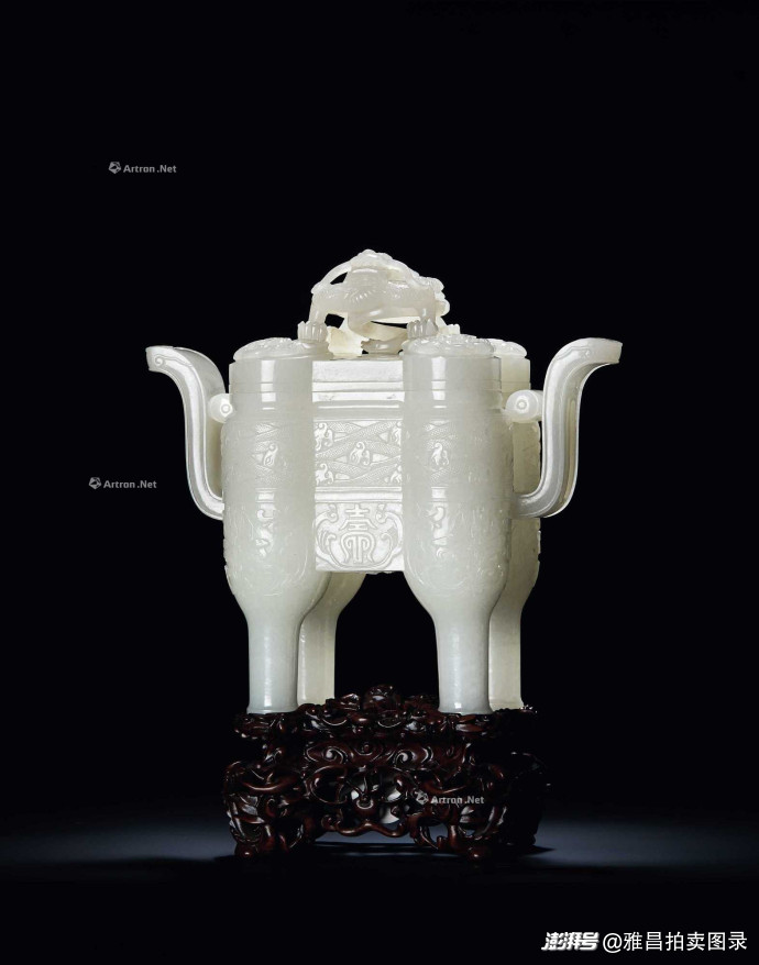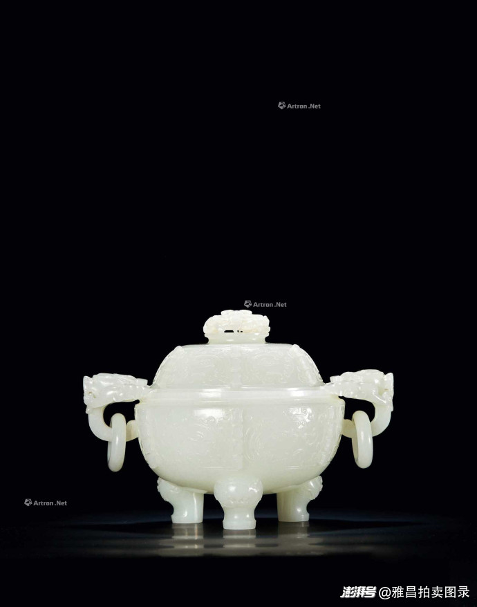 "静观雅集·古代玉器"专场中,清乾隆白玉仿古蟠螭钮四足方盖炉224.25万元成交,清乾隆白玉兽面纹龙钮炉155.25万元成交。