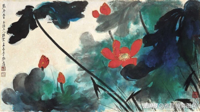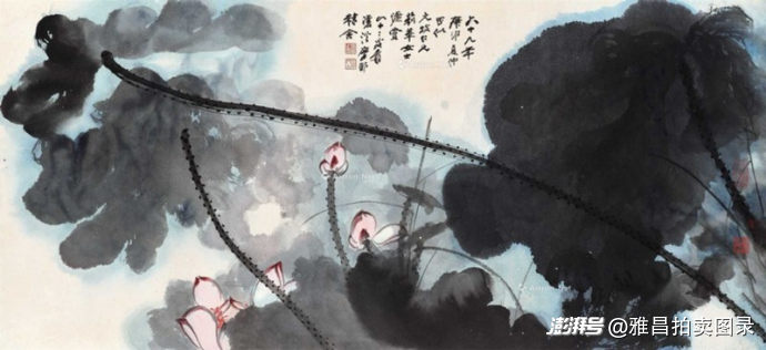 张大千专题:20余件拍品总揽2885万元:泼墨泼彩《溪山烟霭》以667万元成交,晚年泼彩荷花《勾金红荷》632.5万元成交,展现了张大千在泼墨泼彩领域的卓越成就。