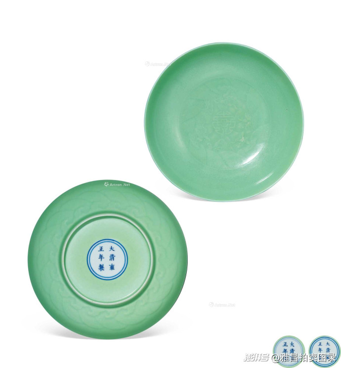 清雍正 御制果绿釉暗花福山寿海图盘 (一对)