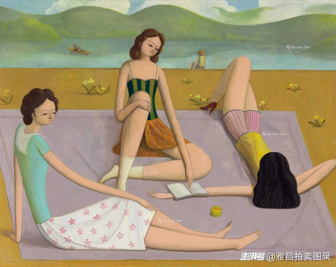 季鑫《湖畔》195.5万元成交:作品融合东西方艺术,致敬马奈《草地上的午餐》的经典构图,将西方古典技法与东方诗意完美融合,是艺术家最大尺幅作品之一。