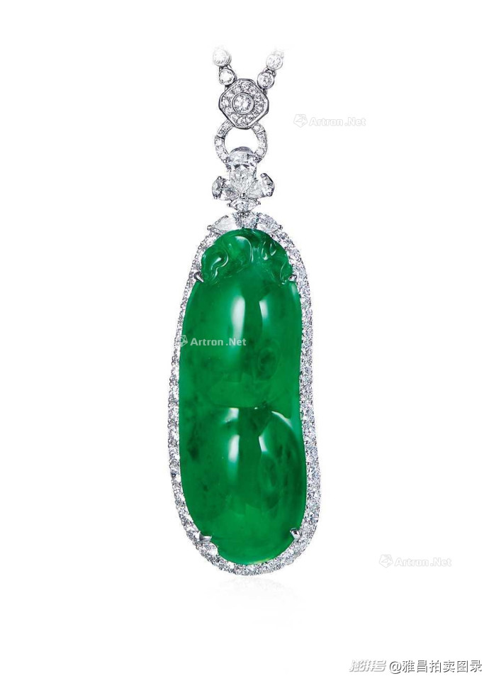 天然翡翠及钻石「福豆」吊坠