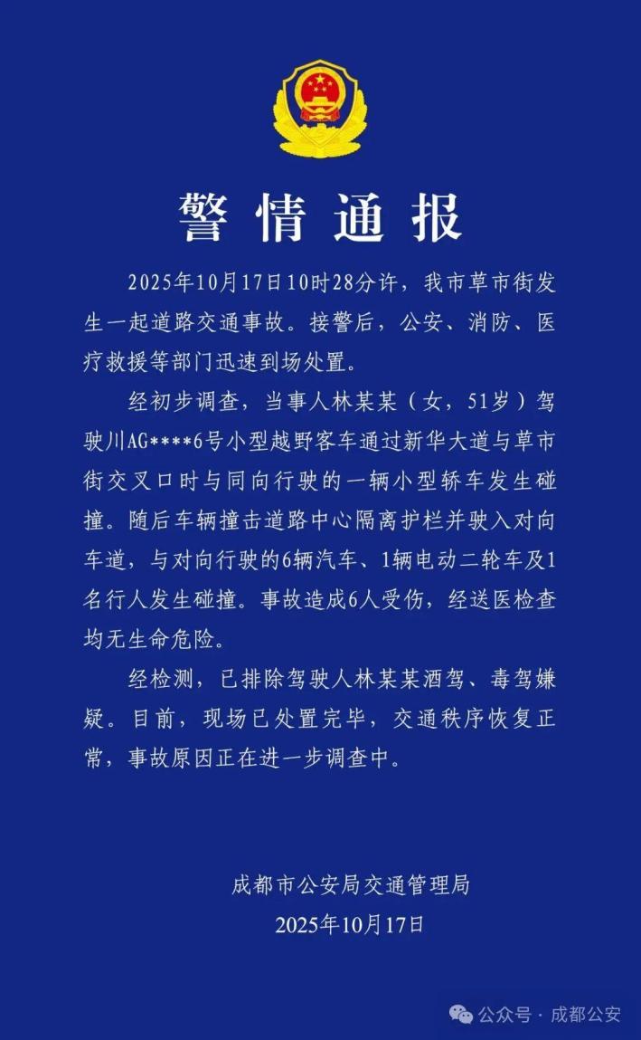 2025年10月17日,成都市公安局交通管理局发布警情通报,详情如下: