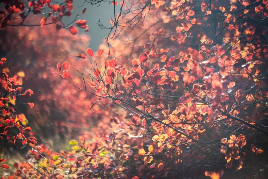 透过红叶洒下的斑驳光影