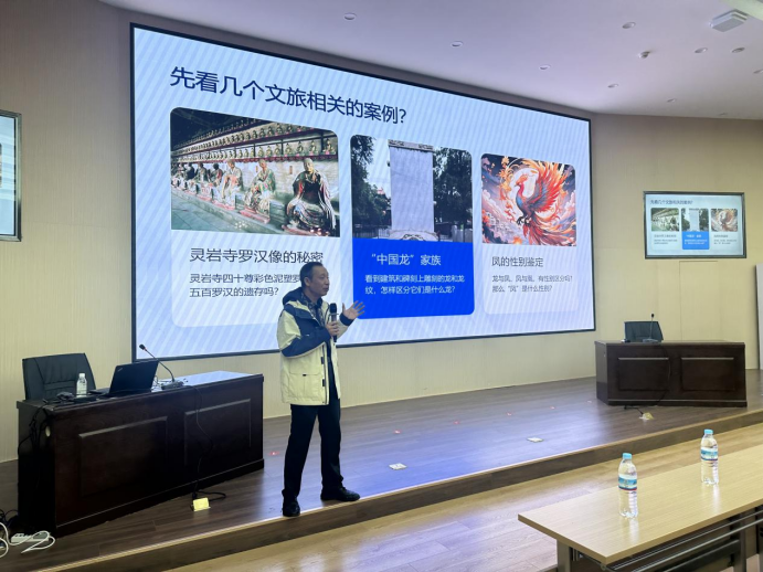 分享会由济南职业学院曾招喜教授以“赋能文旅新未来:做文化与旅行的‘超级连接者’”为题展开。他首先剖析了近年来国内热门文旅案例,从网红城市出圈逻辑到沉浸式文旅项目运营,让学子们直观了解行业前沿动态;随后结合当下消费升级、科技赋能的时代发展背景,解读文旅产业从“观光型”向“体验型”转变的核心趋势;最后,曾教授围绕文旅发展愿景,为新生们提出针对性建议,鼓励大家夯实专业基础、培养创新思维,努力成为连接文化传承与旅行体验的复合型人才。整场分享案例鲜活、见解深刻,有效提振了学子们投身文旅行业的信心。