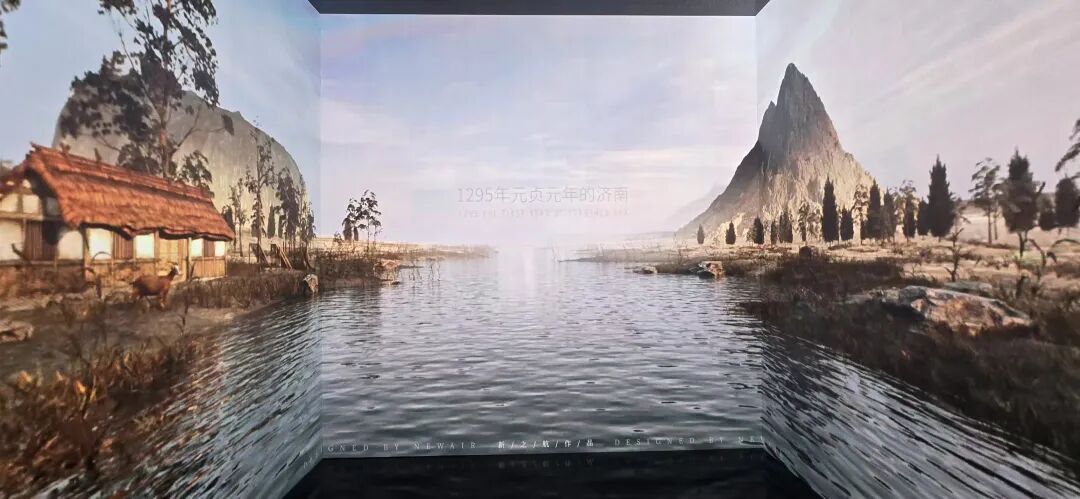 与之呼应的数字化沉浸式影像作品《鹊华秋色图》则突破传统展陈边界,通过三维建模、动态投影等技术,让观众漫步元代大画家赵孟頫笔下的“齐烟九点”。观众步入空间,仿佛穿越时空漫步济南山水之间,在虚实交织的沉浸式体验中,深度感受“这一站・济南”的人文意境与城市韵味。