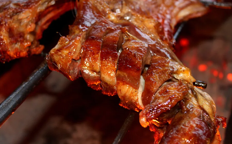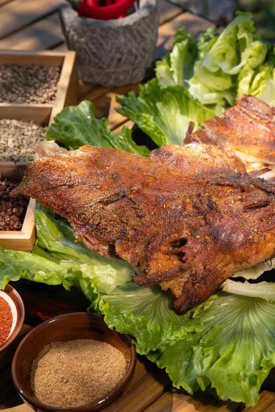 本地散养的小黑山羊,佐以八角、香叶、胡椒等数种香料腌制,慢火烘烤,出炉那一刻,羊肉外表泛着诱人的焦黄色泽,入口酥脆,内里鲜嫩多汁。
