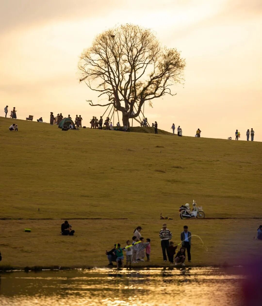 超治愈的白鹭牧场里,一望无际的草坡上,只有一棵孤树静静伫立,仿佛误入宫崎骏笔下的童话世界,蓝天白云为幕,绿草如茵作席,不仅是热门拍照打卡地,也超适合露营野餐。
